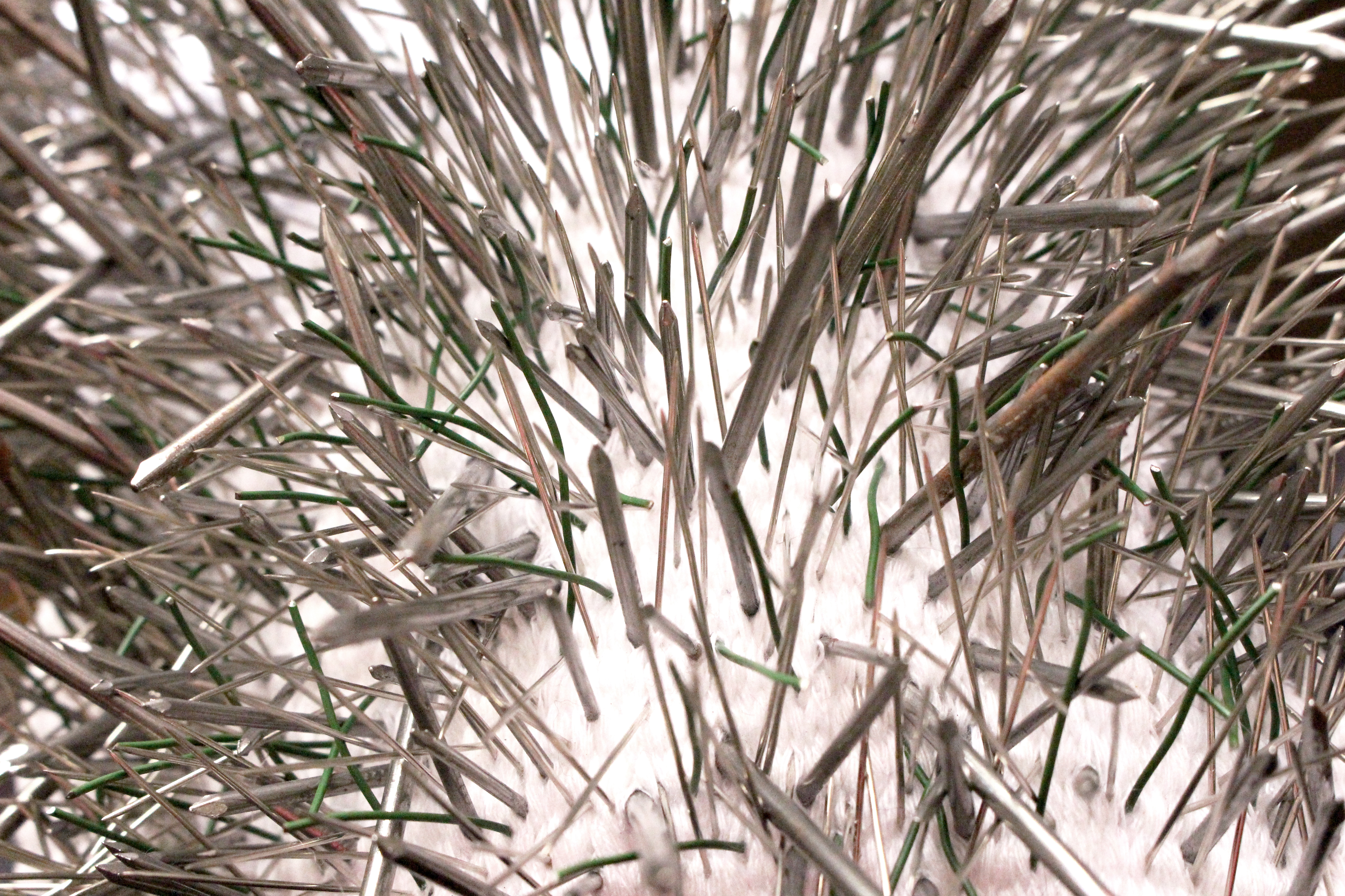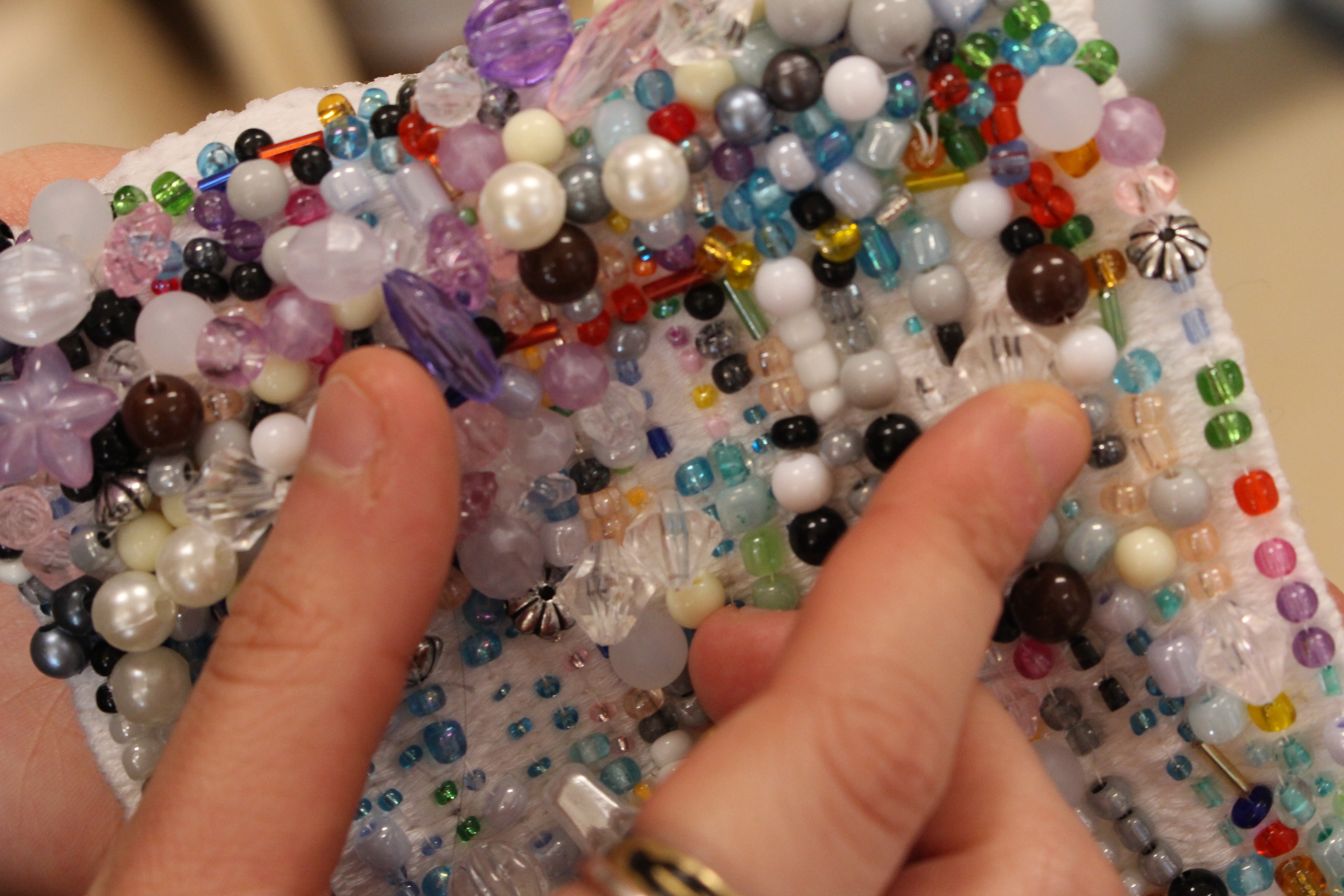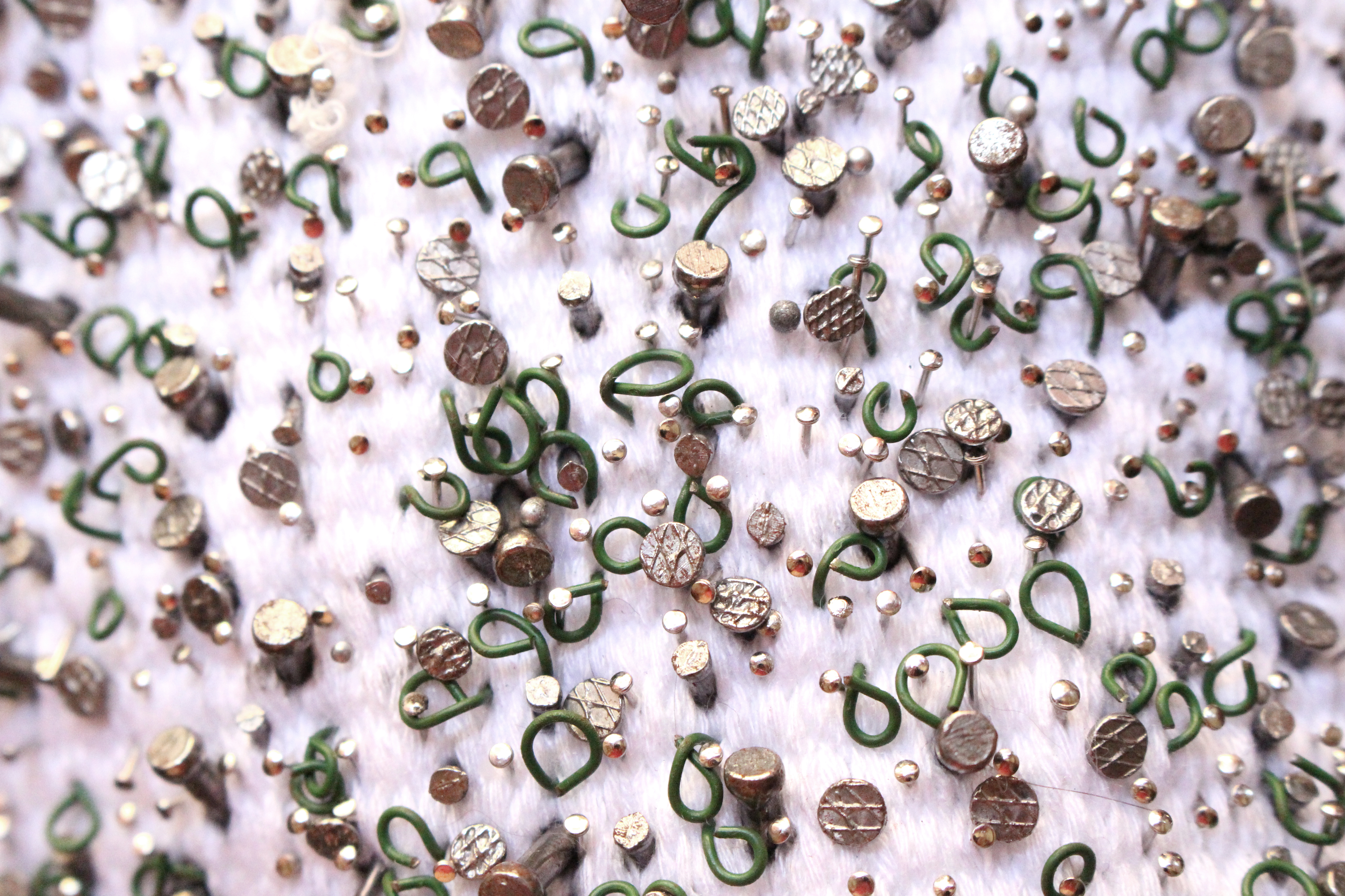 Pour ce faire, j’ai travaillé en collaboration avec des hyperesthésiques pour mieux comprendre moi-même ce qu’ils ressentaient. J’ai établi des témoignages, j’ai testé leurs sens, pour me permettre de voir comment accentuer ou provoquer les sens chez une personne non hyperesthésique. Des premières expérimentations sur les techniques textiles comme le crochet ou le tricot m’ont permis de voir que le surefficient adore la complexité et la diversité des méthodes utilisées. C’est donc une recherche sur la superposition et la surdose qui ont commencé.