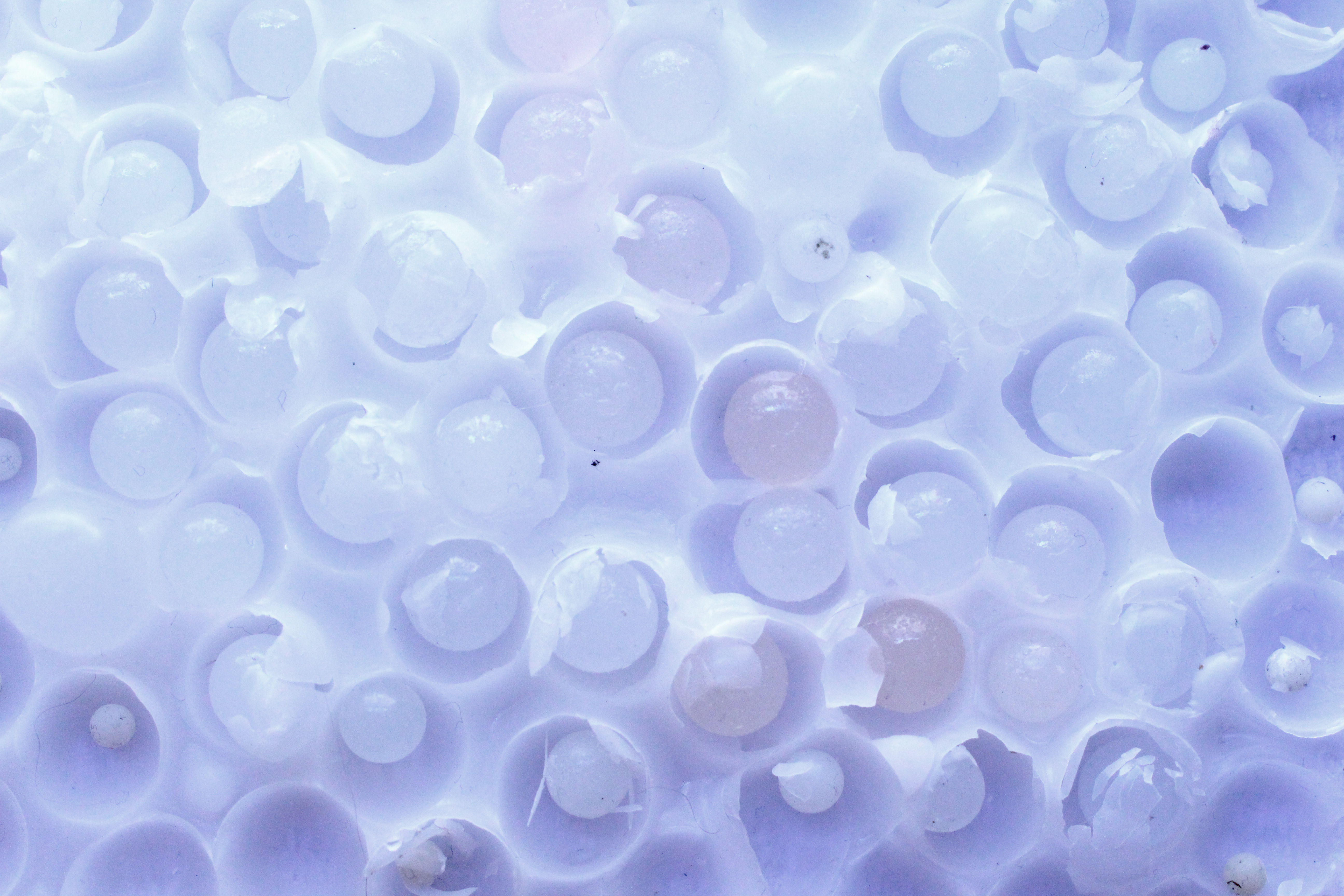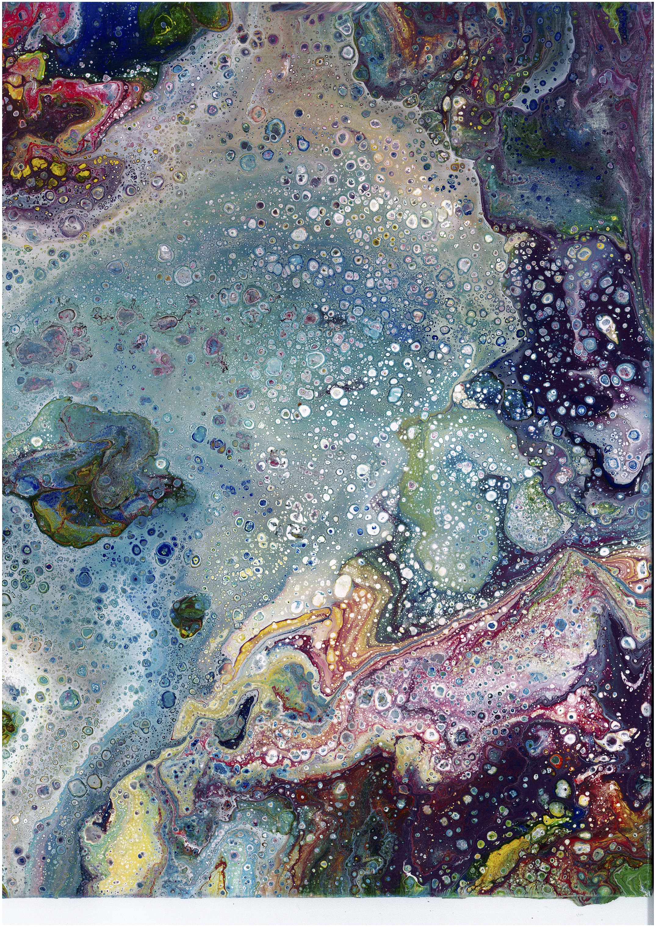 Tout ce travail de recherches sensoriels et de questionnements de la matière m’ont permis d’élaborer plusieurs gammes textiles. Tout d’abord, un travail plutôt métaphorique de l’hyperesthésie avec la mise en jacquard de peintures abstraites réalisées avec la technique de la flipcup destinée à des modules tricotés. Le motif obtenu par cette technique de peinture représente l’overdose des sens chez les hyperesthésiques. Ensuite, une gamme de crochet a été réalisées grâce aux dons d’échantillons de matières. Ces modules, tout comme les premiers, représentent la diversité des informations perçues par les surefficients, cette gamme questionnant autant le visuel que le toucher. La dernière gamme est un travail plus unique d’artisant, reflétant la notion d’exacerbation des sens, qui a pour but d’assembler une multitude de matières et de techniques en tout genre afin de provoquer les sens de ceux qui le touchent. Nous y trouvons du feutre, du tissage, du tricot, du crochet, du non- tissé avec des matériaux divers comme du sac poubelle, des jeux pour enfants, des clous, des coquillages, etc. Ces modules questionnent également les notions de températures, d’électricité statique, etc.