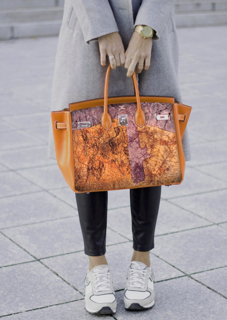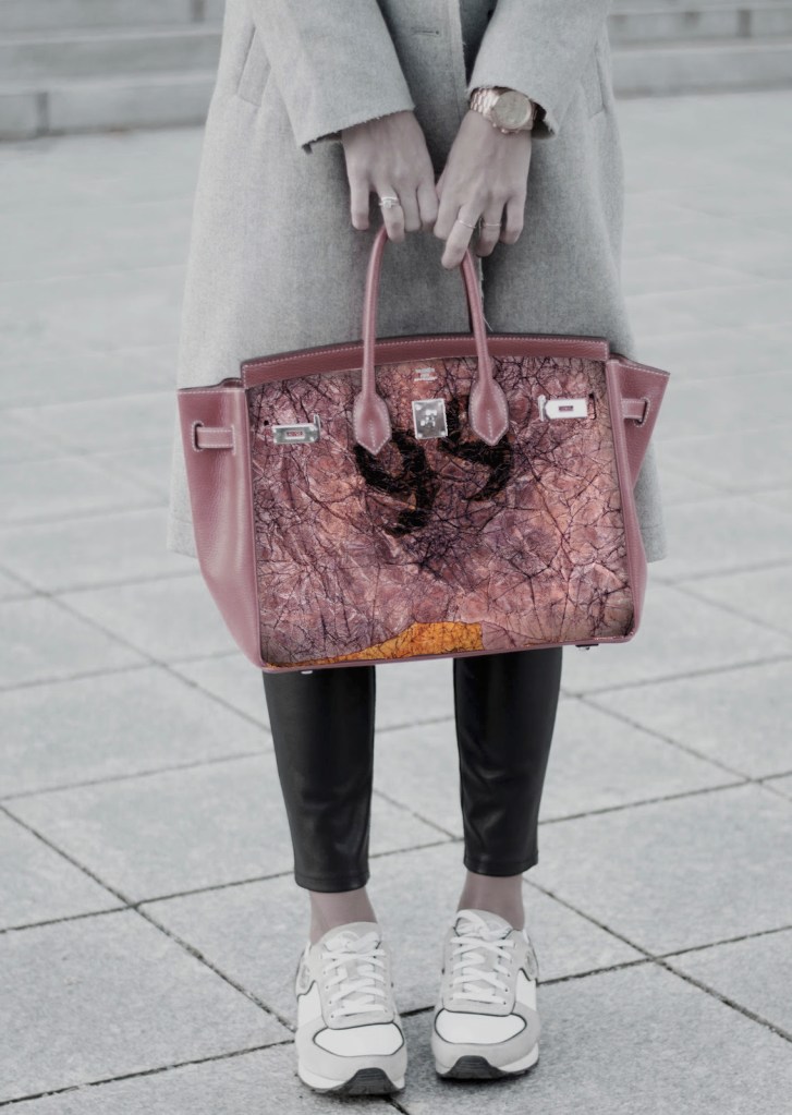 // the « cadavre exquis » game. Birkin bag-Hermès_to send SMS_in paper_silky_vegan.